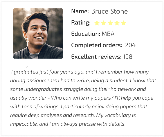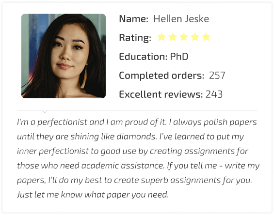 To write an excellent academic paper, it’s crucial to possess good critical thinking skills, have appropriate knowledge of the discipline, and know how to apply an academic writing style. We therefore attentively approach the recruiting process to collaborate with professional essay writers only. They pass several tests and provide detailed personal information, including documents to prove their level of expertise. As a result, you will receive papers that are well-researched, properly cited, and written within academic standards. We are proud that any writer from our writers team can complete the paper at a high level.